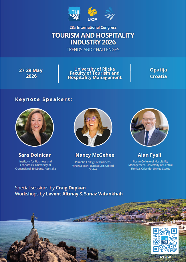 Fakultet za menadžment u turizmu i ugostiteljstvu, Sveučilišta u Rijeci, u suradnji s Rosen College of Hospitality Management, University of Central Florida, organizira 28. međunarodni kongres Tourism & Hospitality Industry – Trends and Challenges (THI 2026). Kongres će se održati na Fakultetu za menadžment u turizmu i ugostiteljstvu u Opatiji od 27. do