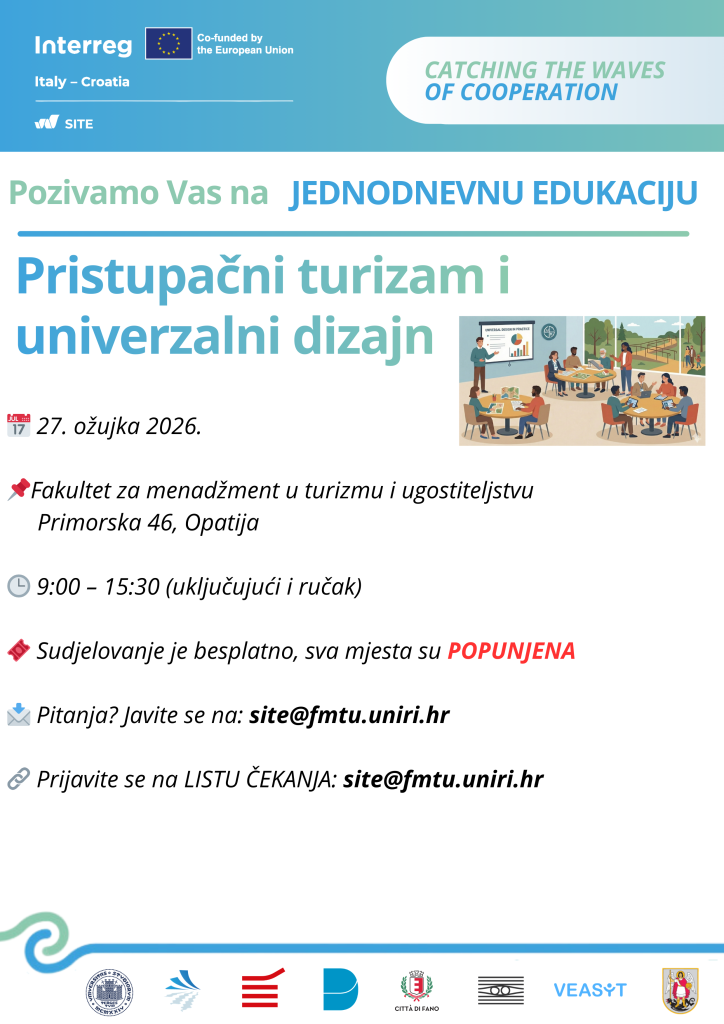 Pozivamo Vas na jednodnevnu edukaciju koja se organizira u sklopu projekta SITE – Shaping Inclusive Tourist Experiences, financiranog kroz Interreg Italija-Hrvatska 2021.–2027. program.