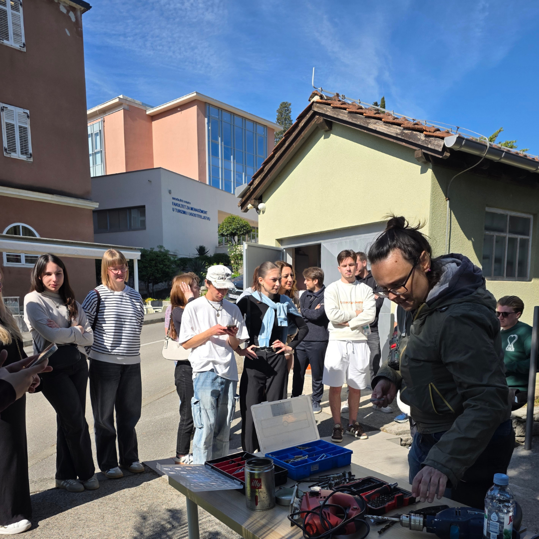 On the occasion of Earth Day, the FMTU Eco Committee and the Žmergo association organized a small home repairs workshop for students, inspired by the principles of the reuse economy — an approach that encourages repair and reuse instead of discarding. The workshop was held at FMTU under the expert guidance of Rijeka-based artist Nika Rukavina.