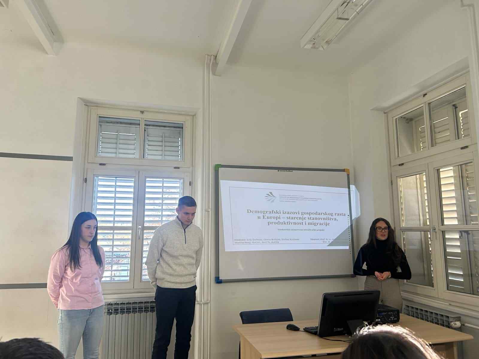 - „Demografski izazovi gospodarskog rasta u Europi – starenje stanovništva, produktivnost i migracije“ (studenti/ce: Erik Štefanac, Gloria Bošnjak, Stefani Križanac; mentorice: prof. dr. sc. Marinela Krstinić Nižić, doc. dr. sc. Maša Trinajstić)