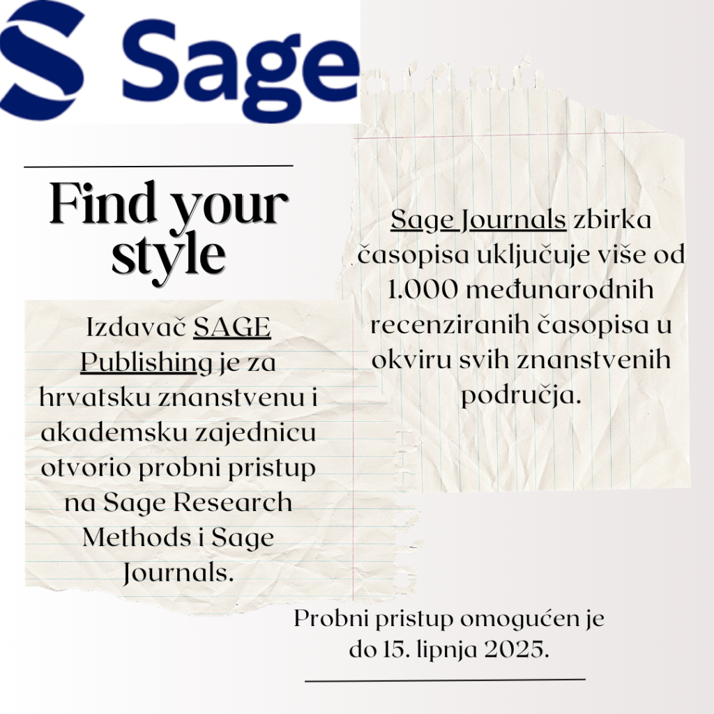 Izdavač SAGE Publishing je za hrvatsku znanstvenu i akademsku zajednicu otvorio probni pristup na Sage Research Methods i Sage Journals.