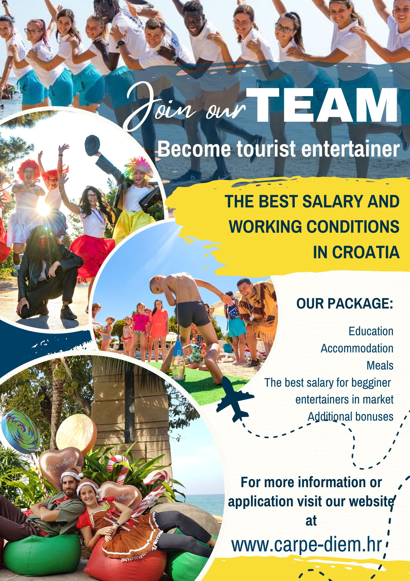 - Iskustvo u animaciji, vođenju sportskih treninga raznih vrsti, vođenju igara, radionica ili programa je prednost, ali nije uvjet — važnija je osobnost i energija!