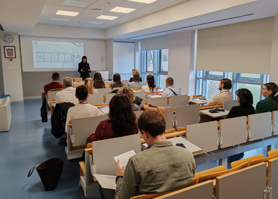 Zanimljiv dio programa bilo je obraćanje dr. sc. Vedrane Čikeš, koja je iz perspektive bivše doktorandice podijelila iskustva rada na disertaciji i otvoreno govorila o prednostima i izazovima skandinavskog modela doktorskog studija. Uvod u istraživački rad upotpunila je voditeljica knjižnice Iva Kovačević Melinčević, mag. croat., predstavljajući radionice namijenjene razvoju istraživačkih vještina.